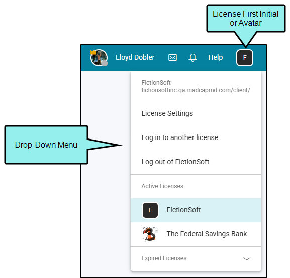 The icon in the upper-right of Flare Online displays the avatar for your license key, or it displays the first initial if you have not yet set an avatar. All of the information you see throughout the interface is tied to this license. Clicking this displays a drop-down where you can choose various options to open license settings, switch to a different license (if you have more than one), or log out. License SettingsThe License Settings option lets you perform tasks such as changing the license key label, setting up Slack integration, integrating with AI Assist (ChatGPT) or single sign-on, and choosing security settings. Also, some users are allowed to buy more user seats and purchase additional storage space. See License Management and Purchasing. |