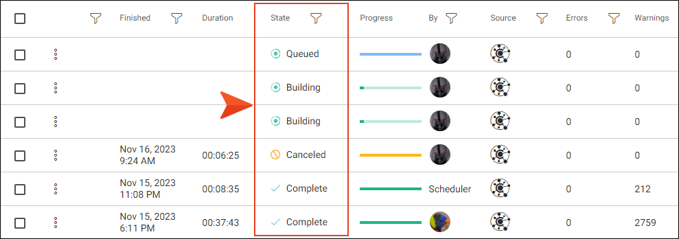 Note If a build seems to be stuck in the queued state for quite a long time, please contact technical support.