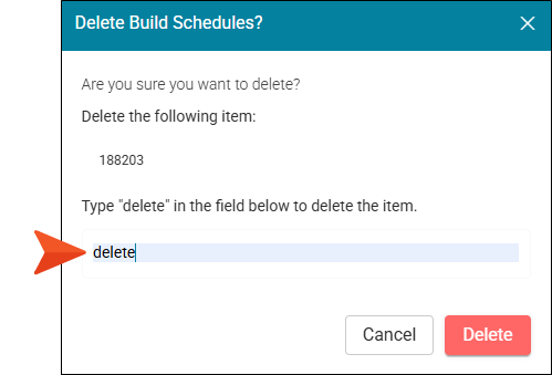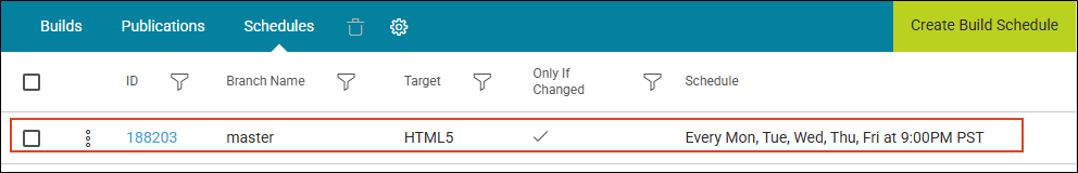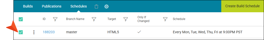 4. In the grid, select the check box next to the scheduled build you want to remove.