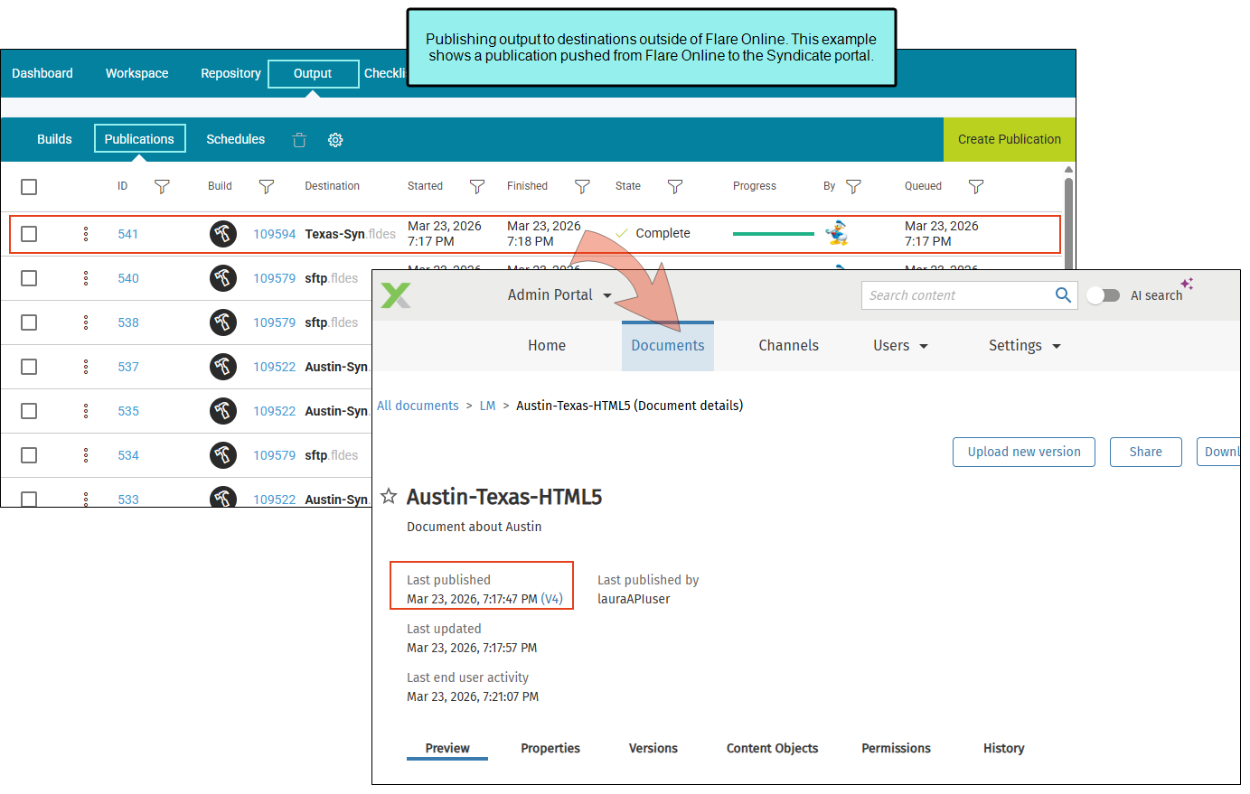 You can publish output to locations outside of Flare Online. You can use Flare Online to host your content if you choose to do so, but this feature gives you the option to publish output to Syndicate (i.e., MadCap's Enterprise Content Delivery Platform) or to a remote server via SFTP.