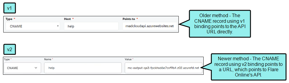 The CNAME will point to the URL, and URL will point to Flare Online's API.
